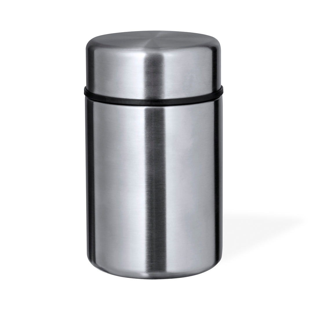 Fiambrera de doble pared, fabricada en acero inox y de 600 ml de capacidad. Cierre de seguridad con tapadera estanca de rosca en acero inox. Disponible en varios colores y presentada en atractiva caja individual de diseño.