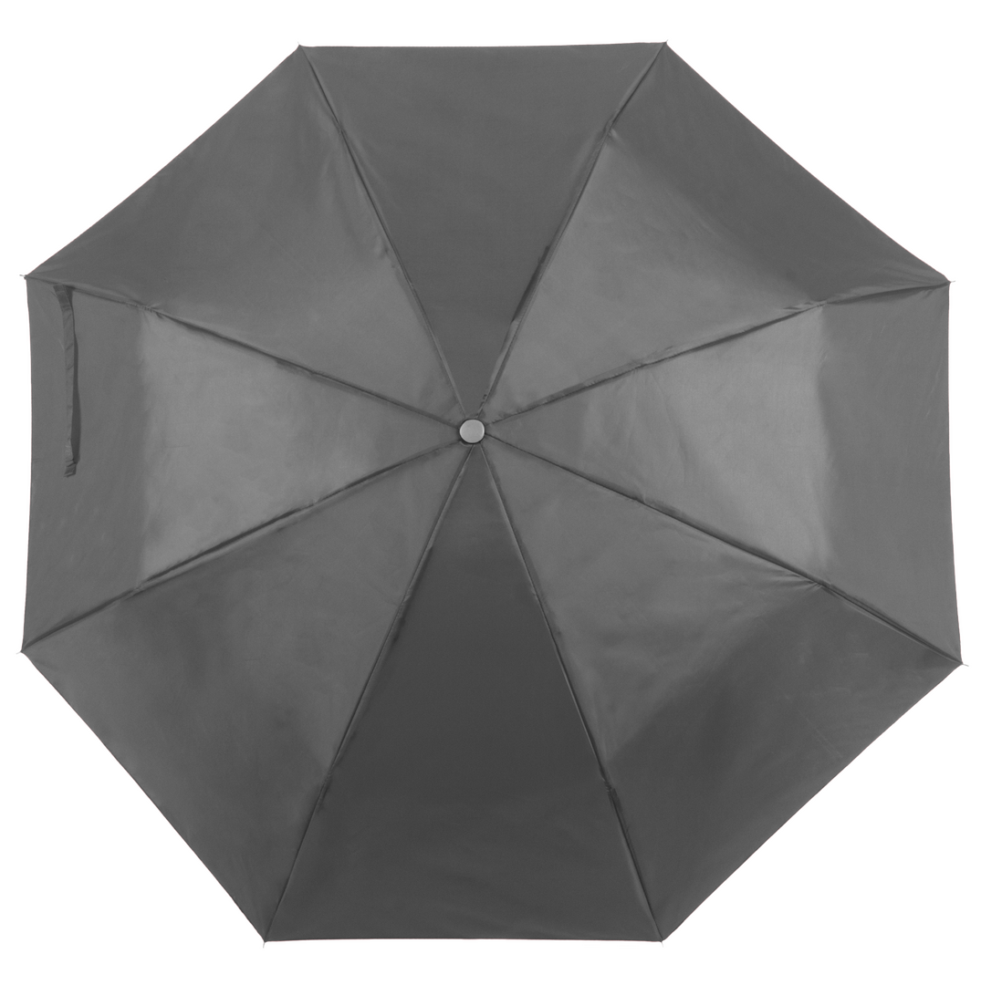 Paraguas plegable de 8 paneles de poliéster 170T en extensa gama de vivos colores y 96cm de diámetro. De apertura manual, con varillas metálicas en color plateado, cierre de velcro y cinta de transporte en mango ergonómico. Presentado en funda individual a juego.