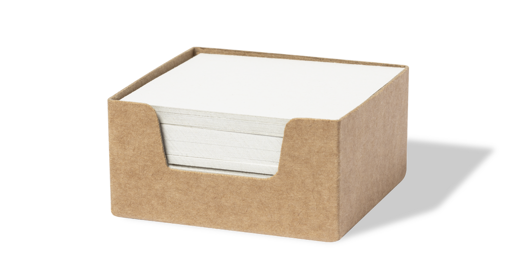 Portanotas fabricado en papel reciclado. Incluye 370 hojas en papel eco y distintivo EcoPaper.